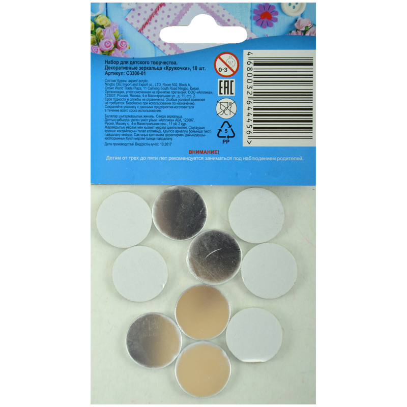 Материал декоративный Апплика "Зеркальца. Кружочки", самоклеящиеся, 10шт.