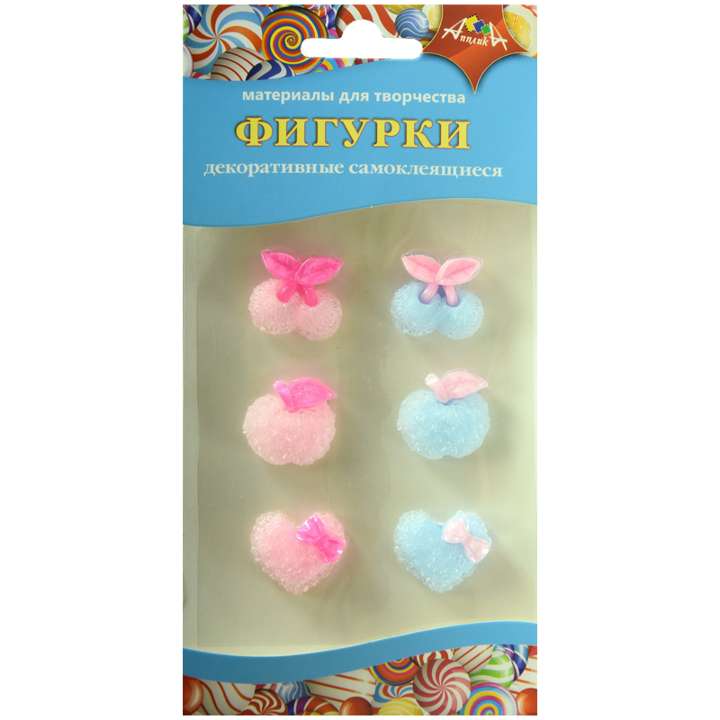 Материал декоративный Апплика "Фигурки самоклеящиеся", ассорти (сердце, вишенка, яблочко), 6шт.