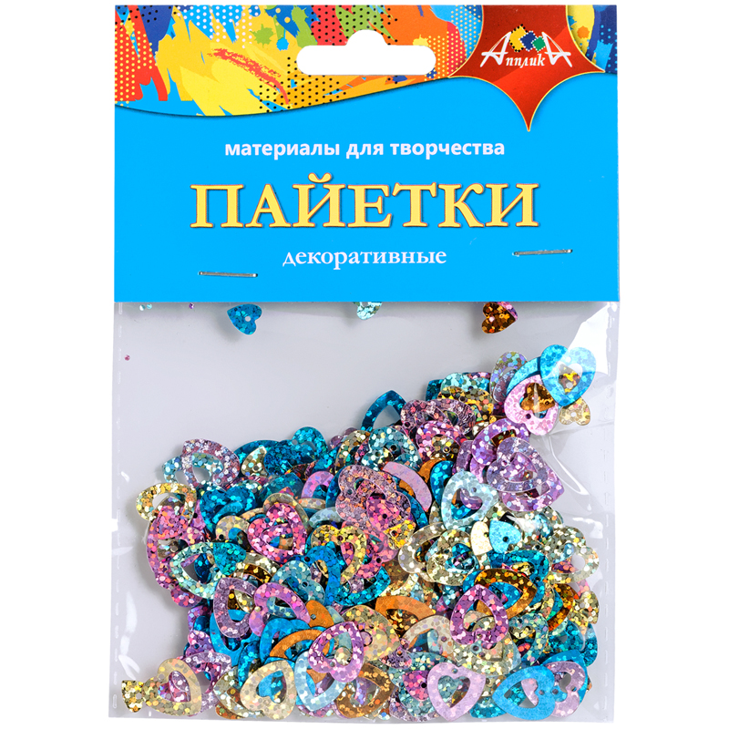 Материал декоративный Апплика "Пайетки. Сердечки", ассорти