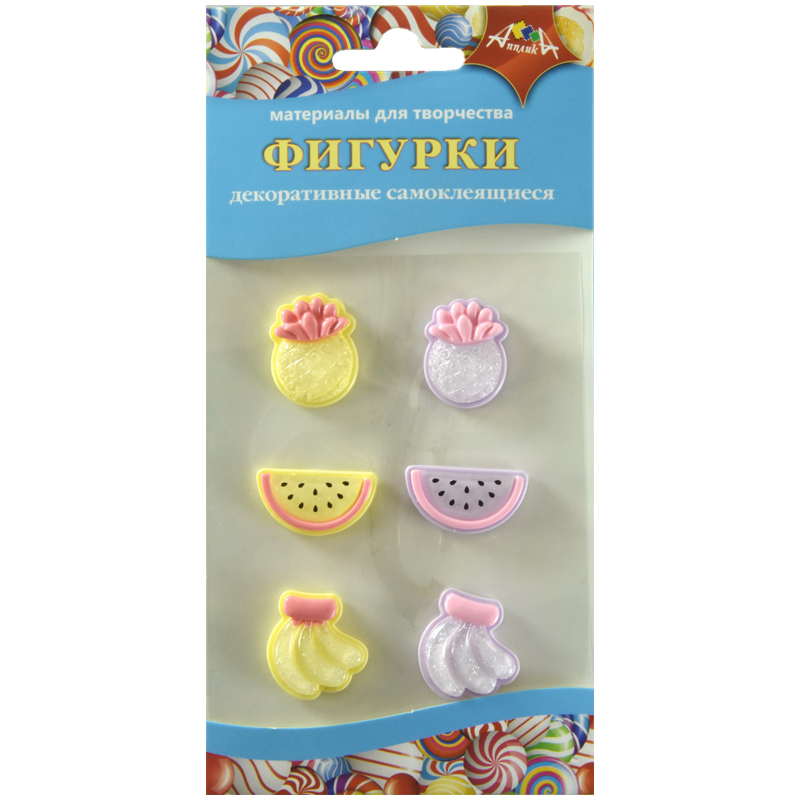 Материал декоративный Апплика "Фигурки самоклеящиеся", ассорти (фрукты), 6шт.