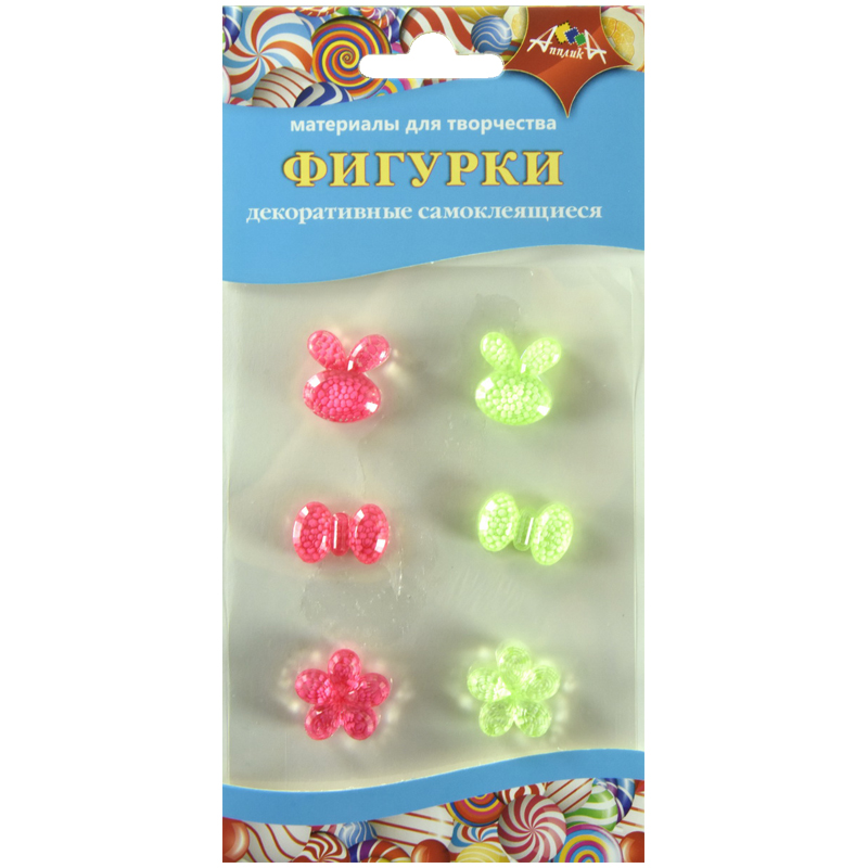 Материал декоративный Апплика "Фигурки самоклеящиеся", ассорти (зайчик, бантик, цветочек), 6шт.