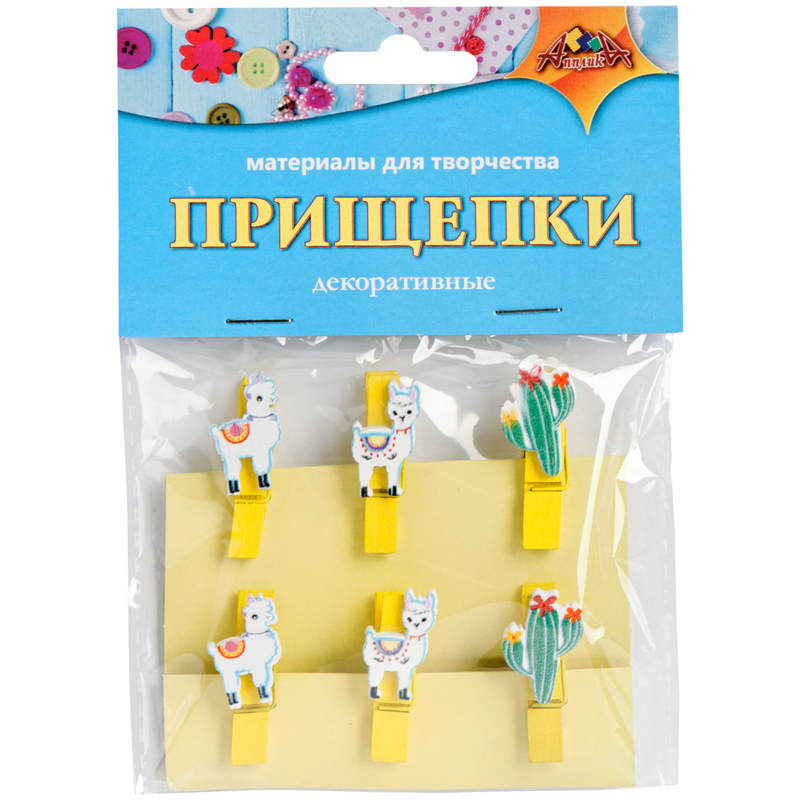 Прищепки декоративные Апплика "Ламы и кактусы", 6шт.