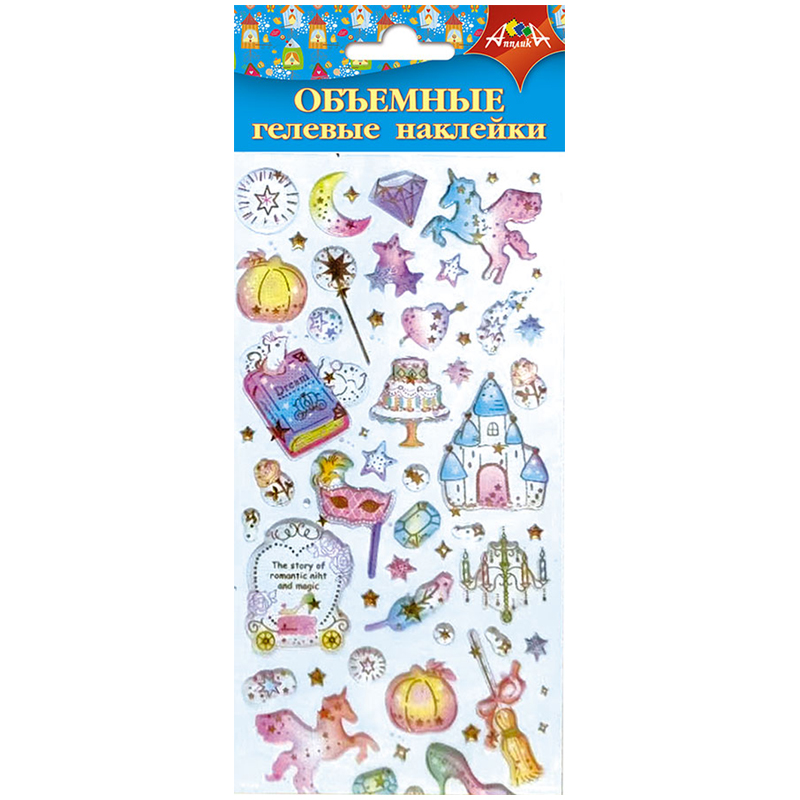Наклейки объемные гелевые Апплика "Волшебство", 17,5*9см, пакет, европодвес