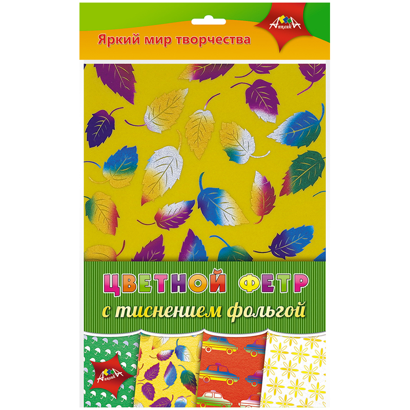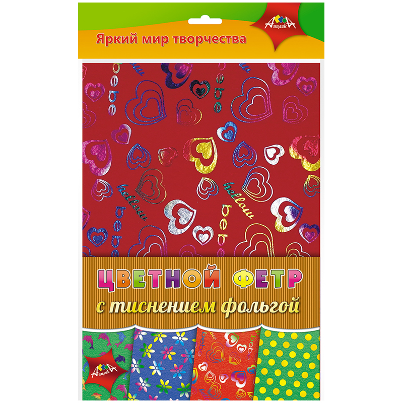 Цветной фетр Апплика "Ассорти №4", А4, 4л., 4 дизайна., тиснение фольгой, 1мм