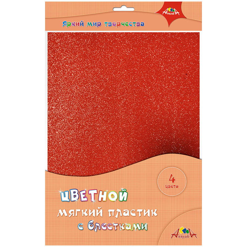 Пластик цветной мягкий Апплика с блестками, A4, 4л., 4цв.