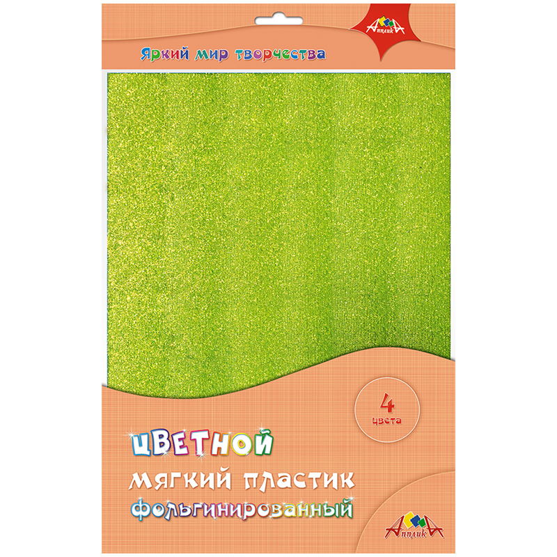 Пластик цветной мягкий Апплика фольгированный, A4, 4л., 4цв.