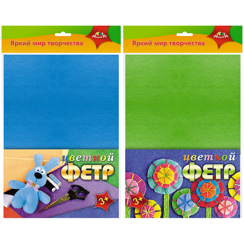 Цветной фетр Апплика "Ассорти №3", А4, 4л., 4 дизайна., тиснение фольгой, 1мм