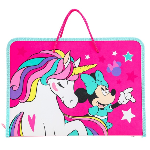 Папка пластиковая с ручками А4, на молнии, Минни Маус и единорог