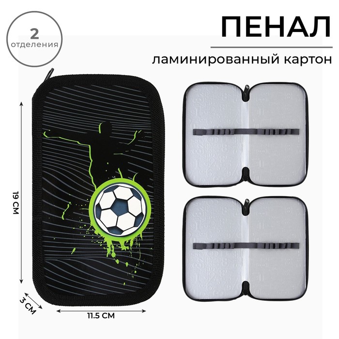 Пенал школьный 2 секции 190 х 105 лам.кар ПО-090 «1 сентября: Футбол»