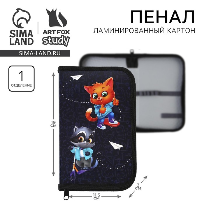 Пенал школьный 1 секция 190 х 115 лам.карт ПО-02 «1 сентября: Зверята»