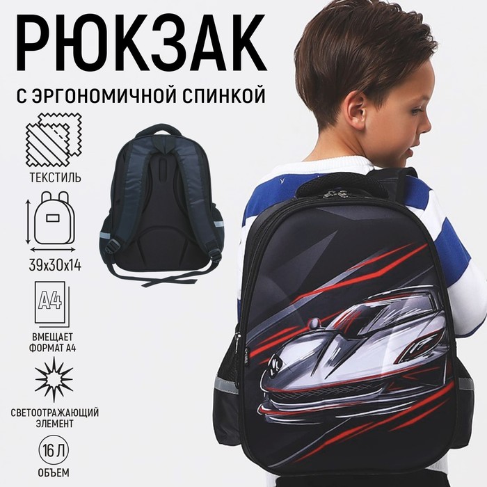 Рюкзак школьный каркасный 39х30х14 см «1 сентября: Машина»