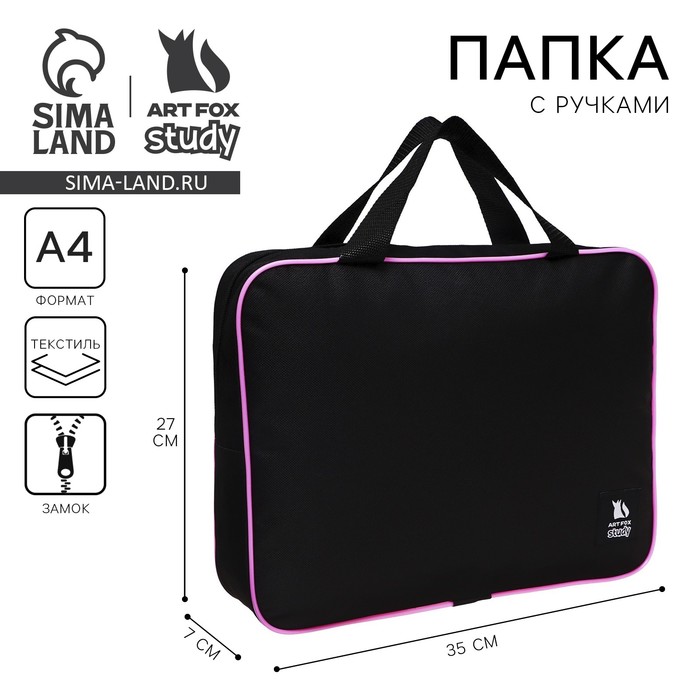 Папка для труда А4 на молнии текстиль 70мм 350 х 270 , черный/розовый «1 сентября»