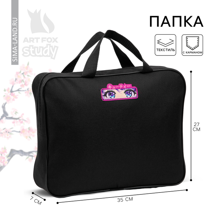 Папка для труда А4 на молнии текстиль 70мм 350 х 270 «1 сентября: Аниме глаза»