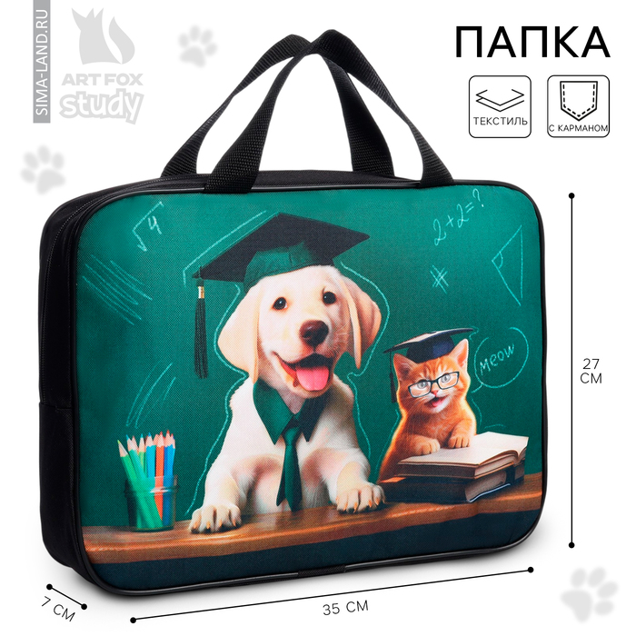 Папка для труда А4 на молнии текстиль 70мм 350 х 270 «1 сентября: Кот»