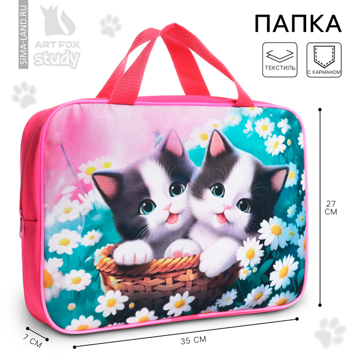 Папка для труда А4 на молнии текстиль 70мм 350 х 270 дев «1 сентября: Котики в корзинке»
