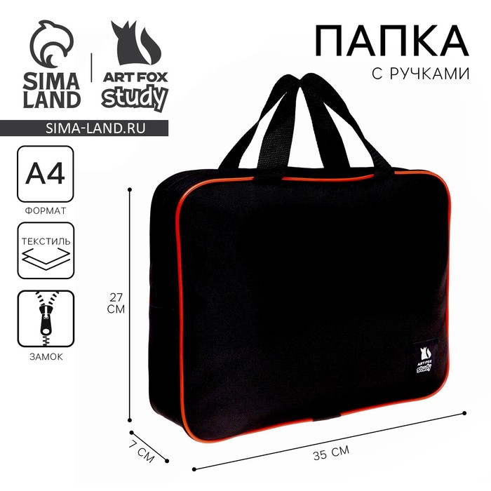 Папка для труда А4 на молнии текстиль 70мм 350 х 270 унив, черная/оранжевый «1 сентября»