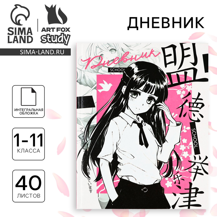 Дневник школьный для 1-11 класса, в интегральной обложке, 40 л. «1 сентября:Аниме. Девочка»