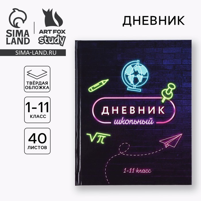 Дневник школьный для 1-11 класса, в твердой обложке, 40 л. «Неон»