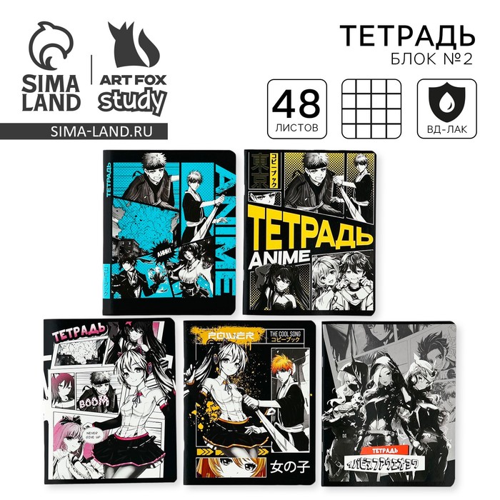 Тетрадь в клетку 48 листов А5 на скрепке. внутренний блок №2 МИКС «Аниме комикс» ВД лак