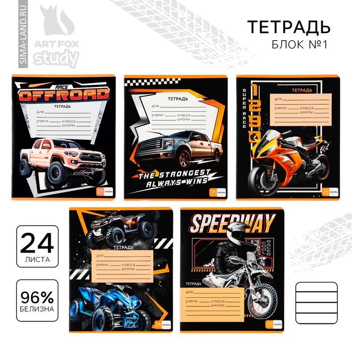 Тетрадь в линейку 24 листа А5, на скрепке «1 сентября: Гонщик», обложка мелованный картон, 5 видов МИКС