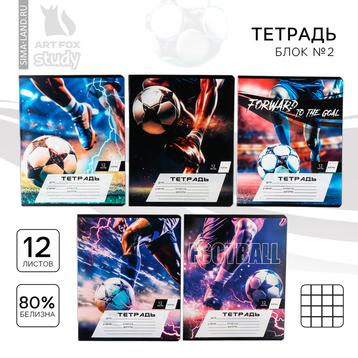 Тетрадь в клетку 12 листов А5, на скрепке «1 сентября: Мяч», обложка мелованный картон, блок №2, 5 видов МИКС