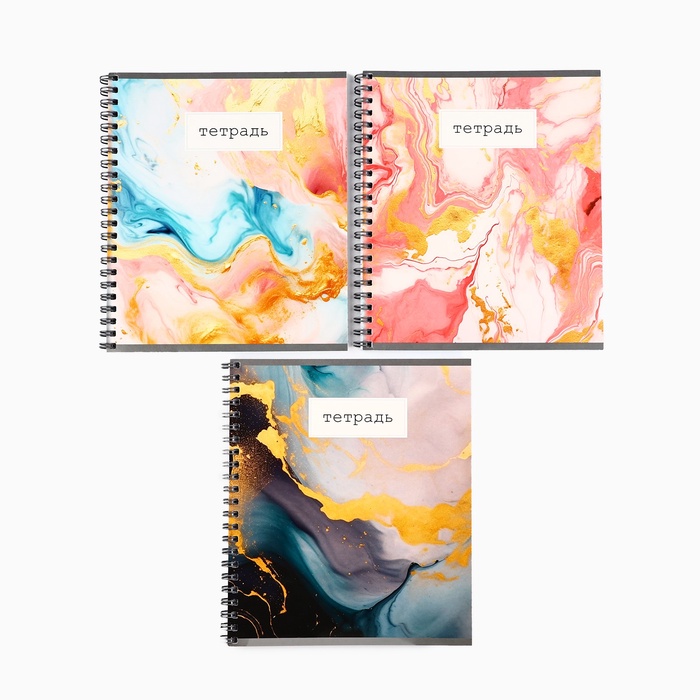 Тетрадь А5, 48 л на спирали, внутренний блок №1 МИКС «Мрамор с золотой текстурой»
