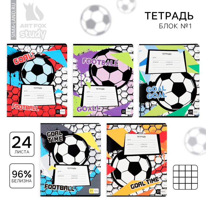Тетрадь в клетку 24 листа А5, на скрепке «1 сентября: Футбол», обложка мелованный картон, 5 видов МИКС
