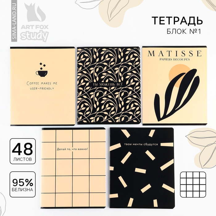 Тетрадь А5, 48 л на спирали, внутренний блок №1 МИКС «Минимализм»