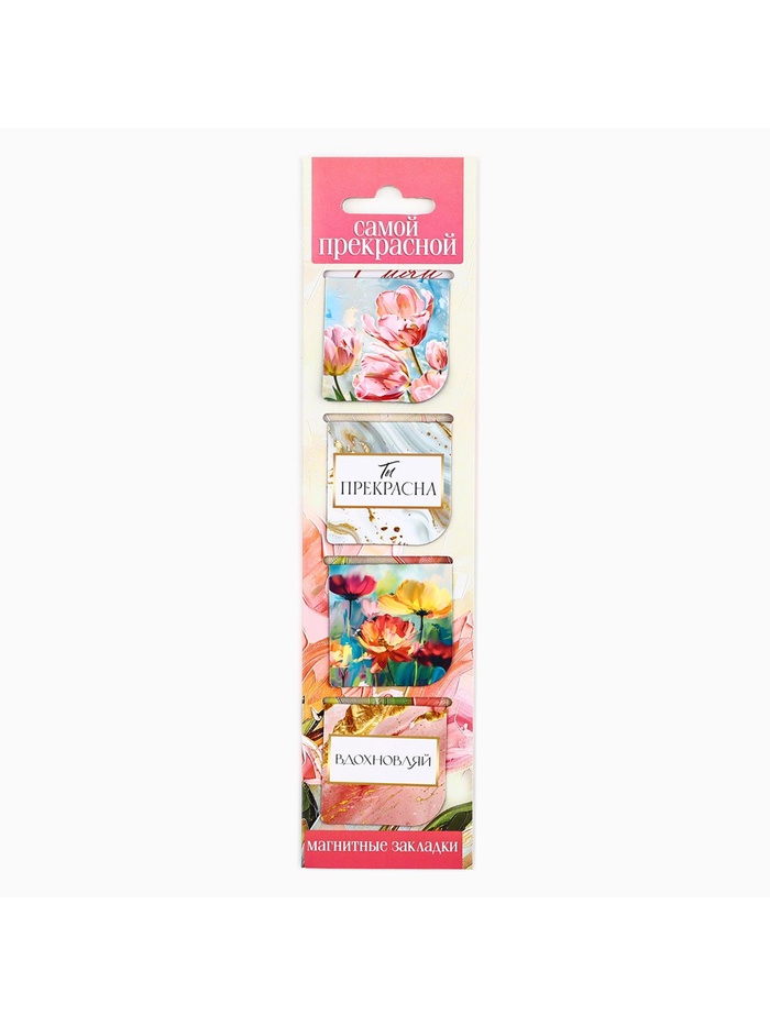 Магнитные закладки 4 шт в открытке "Самой прекрасной"