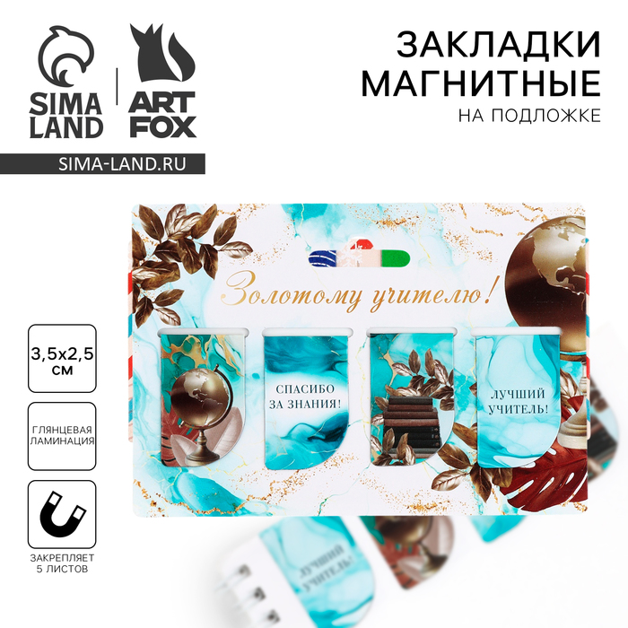 Набор магнитных закладок 4 штуки на подложке «Золотому учителю!»