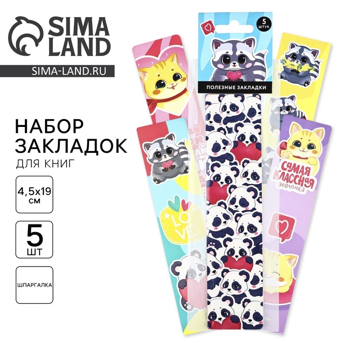 Картонные закладки 5 штук в наборе "Енотик"