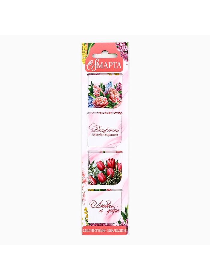Магнитные закладки 4 шт в открытке "С 8 марта"