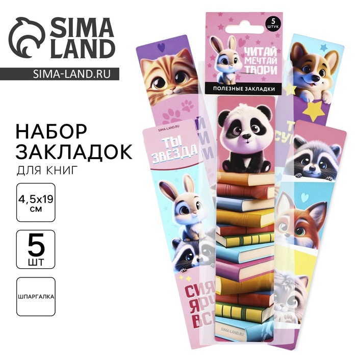 Картонные закладки 5 штук в наборе "Читай, мечтай"