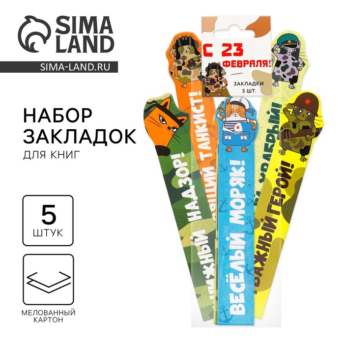 Закладки для книг, фигурные из картона, 5 шт. «С 23 февраля»