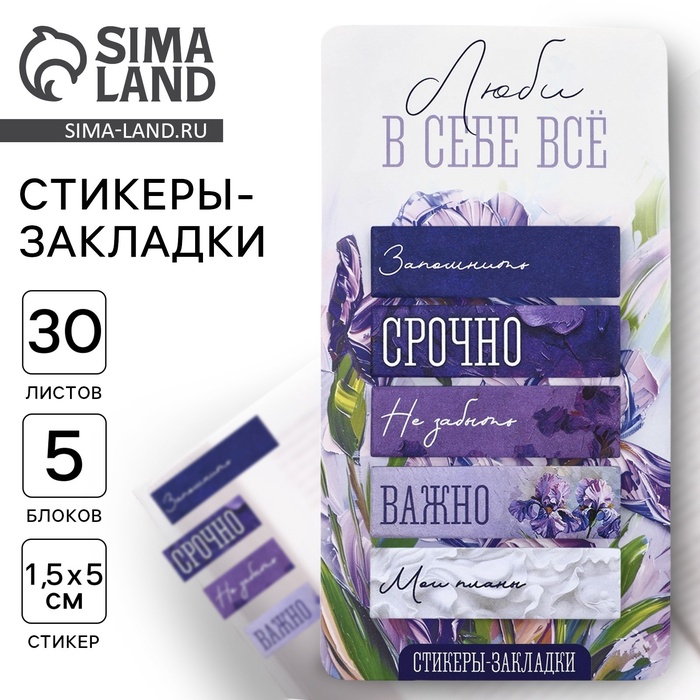 Стикеры-закладки, на подложке "Люби в себе всё", 5 шт, 30 л/шт