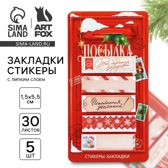 Стикеры для заметок, с липким краем, 30 листов, 5 шт. «Новогодняя почта. Волшебство рядом»