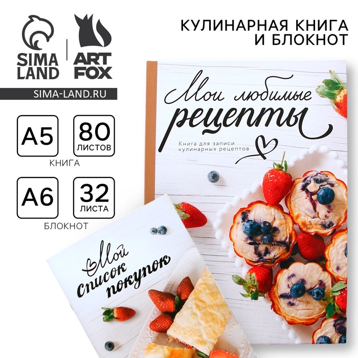 Книга для записи рецептов А5, 80 л и блокнот список покупок А6, 32л «Мои рецепты»