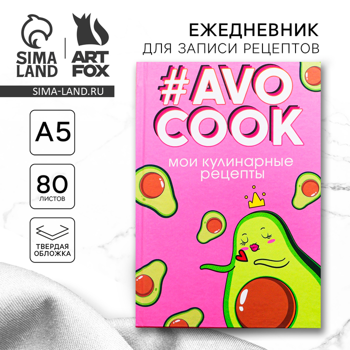 Ежедневник для записи рецептов AVOCOOK. Твердая обложка, глянцевая ламинация, формат А5, 80 листов.