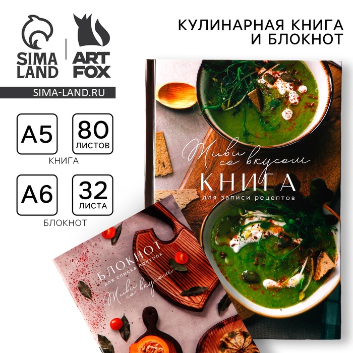 Книга для записи рецептов А5, 80 л и блокнот список покупок А6, 32л «Со вкусом»