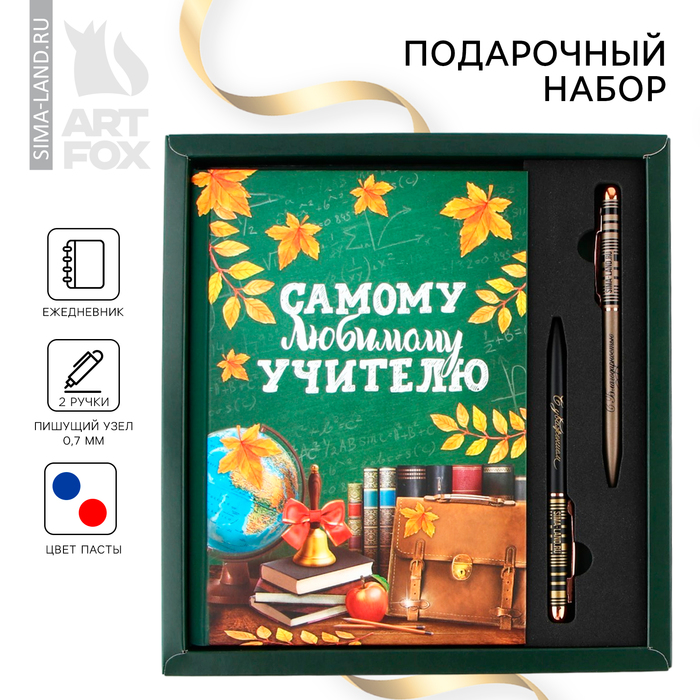 Подарочный набор «Самому любимому учителю»: ежедневник А5, 80 листов, ручки 2 шт. (шариковые, 1 мм, синяя,красная паста)