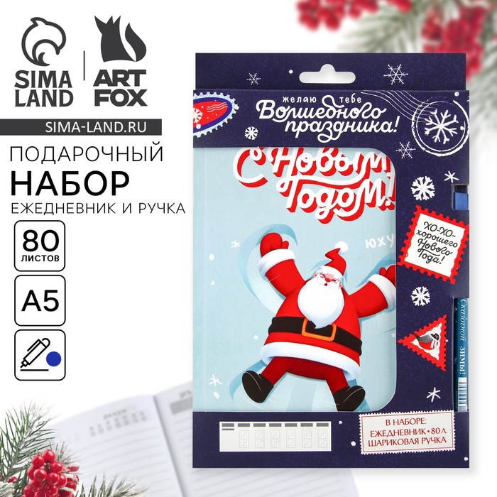 Подарочный набор новогодний, ежедневник А5, 80 листов, ручка синяя паста «Верь в мечту»