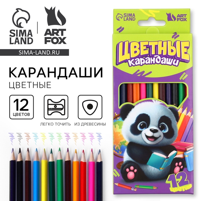 Цветные карандаши, 12 цв трехгранные ArtFox «Панда»