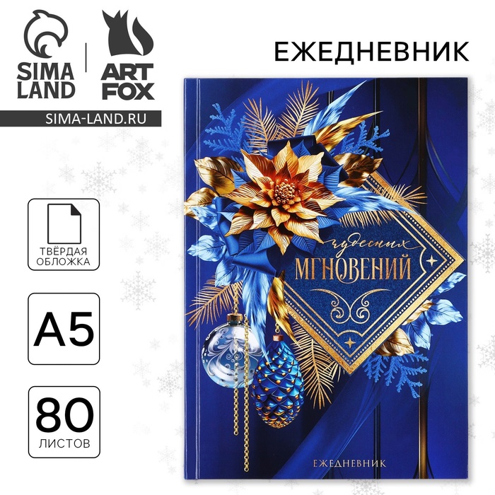 Ежедневник А5, 80 листов, недатированный, в твердой обложке «Новый год: Чудесных мгновений!»