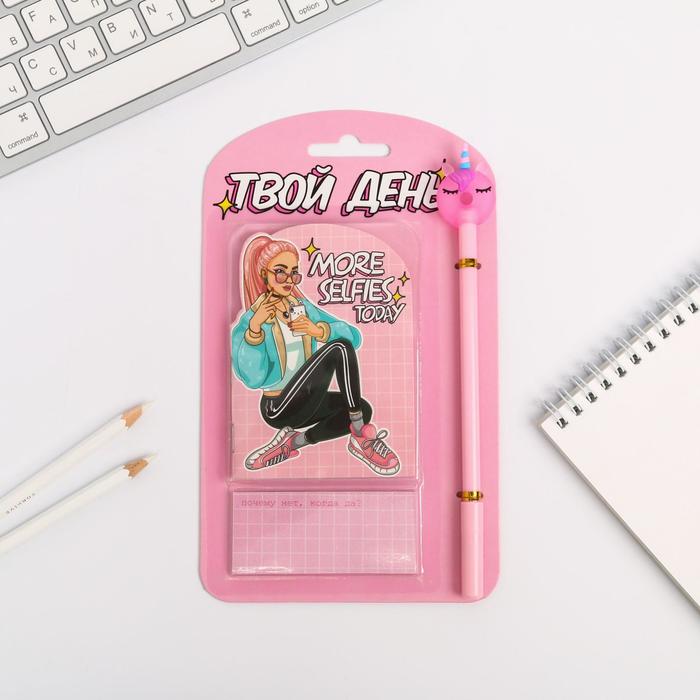 Подарочный набор «Твой день»: блокнот, ручка, блок с липким краем