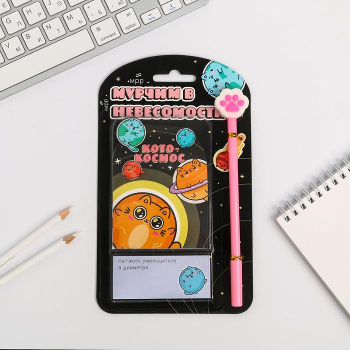 Подарочный набор «Мурчим в невесомости»: блокнот, ручка, блок с липким краем