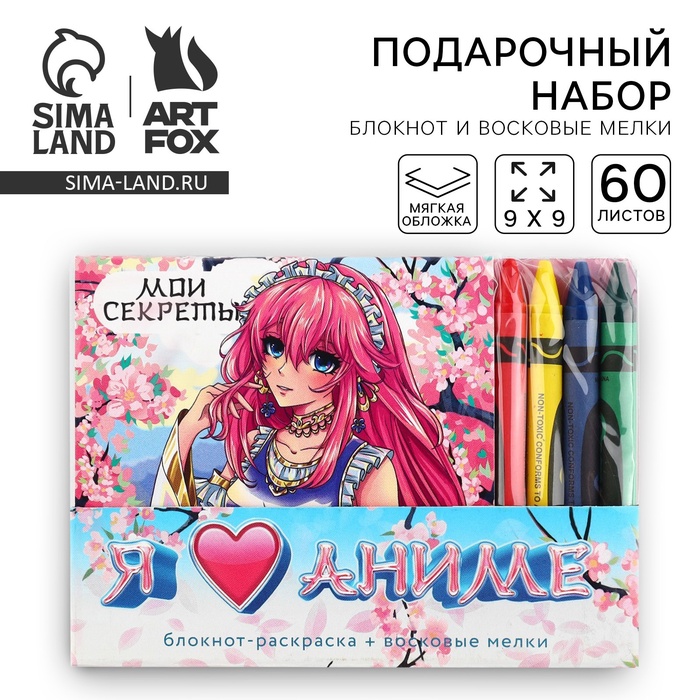 Подарочный набор блокнот-раскраска и восковые мелки «Аниме»