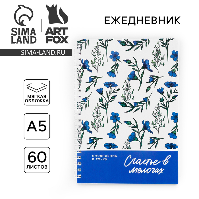 Ежедневник А5, 60 листов в точку «Счастье в мелочах»