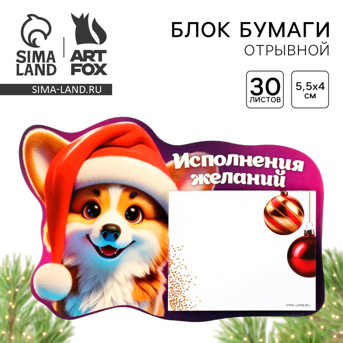 Блок для записей с отрывными листами, 30 л. «Новый год: Корги»