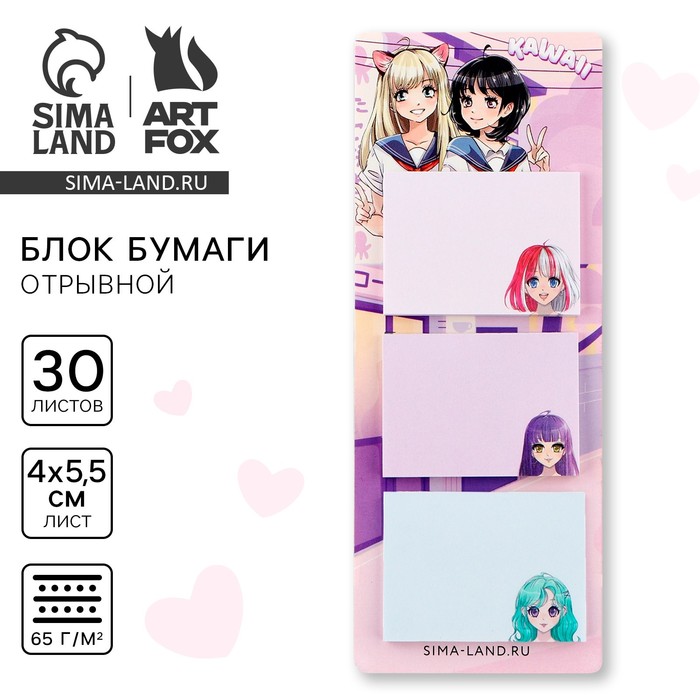 Блок для записей с отрывными листами, 30 л. «Аниме школьницы»