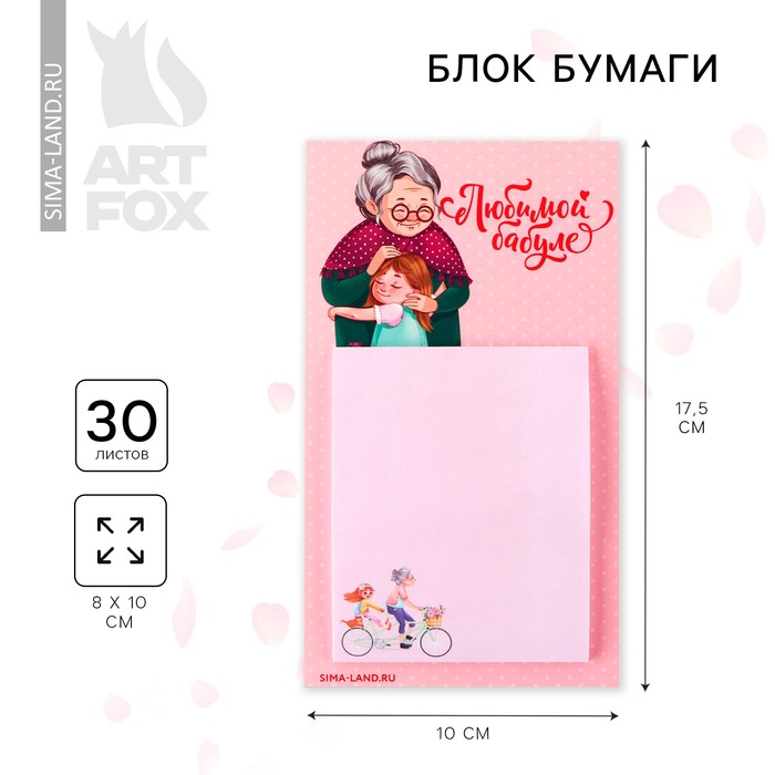 Блок для записей на магните, 30 л. "Любимой бабуле"